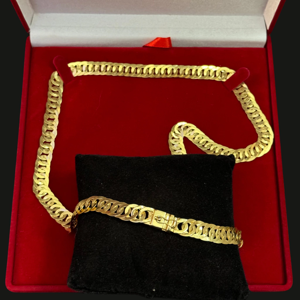 A moeda é um material que NÃO perde a cor, não enferruja e não descasca. O cordão e a pulseira podem ser usados em todas as ocasiões. Para manter a beleza das peças, é recomendado realizar o polimento regularmente. Assim como o ouro e a prata, a moeda antiga pode oxidar de acordo com o nível de ácido úrico do corpo, exigindo cuidados para restaurar seu brilho.
