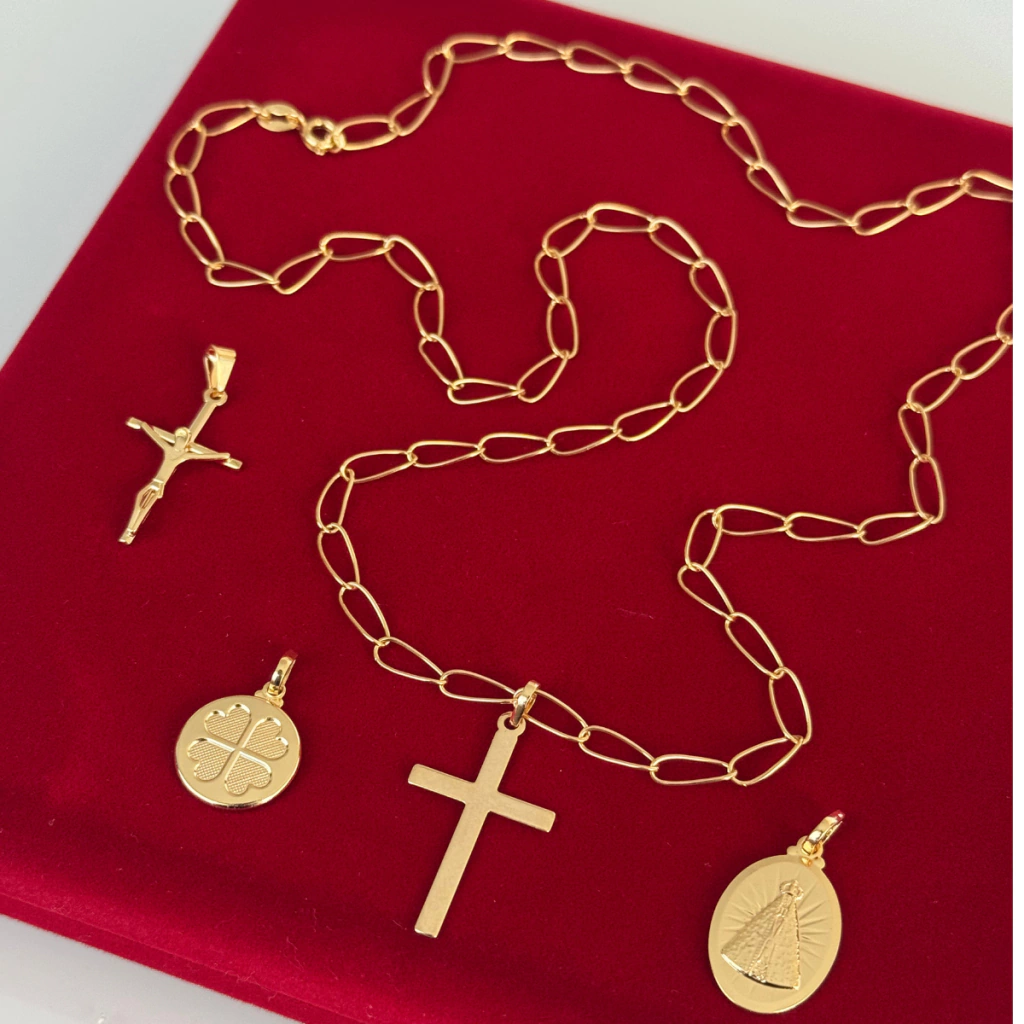 Cordão  pulseira e Pingente Banhado a Ouro 18K