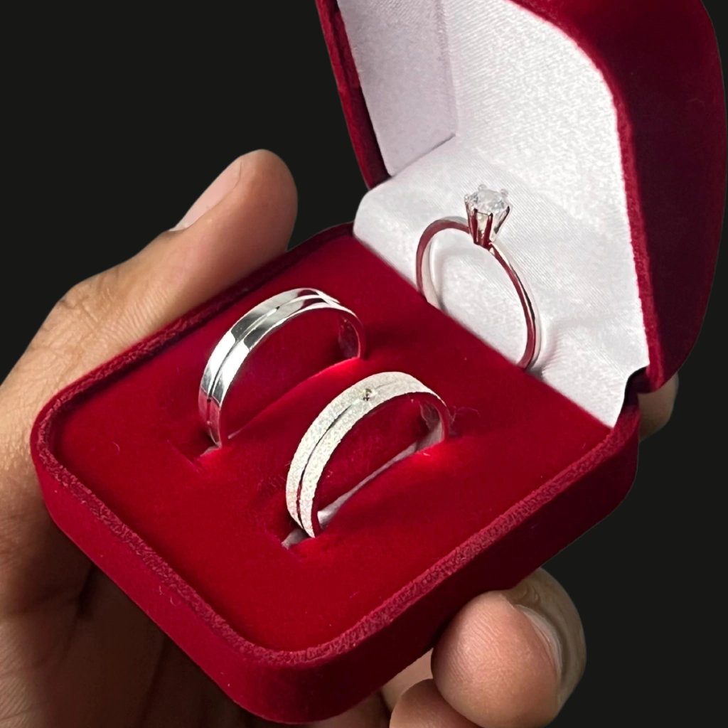 PAR DE ALIANÇA DE PRATA + Solitario de Brinde -
