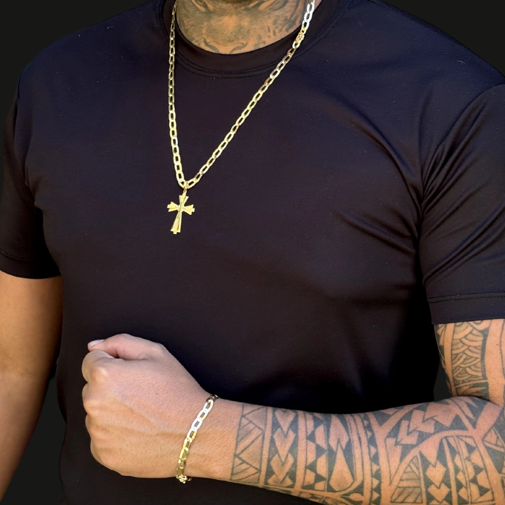 CORDÃO PULSEIRA E PINGENTE LAMINADO 4M